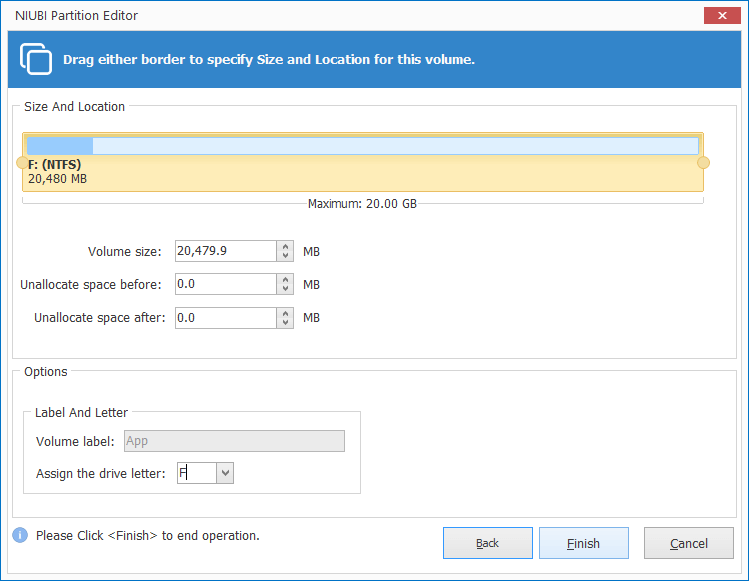Click Finish or edit the target partition first.